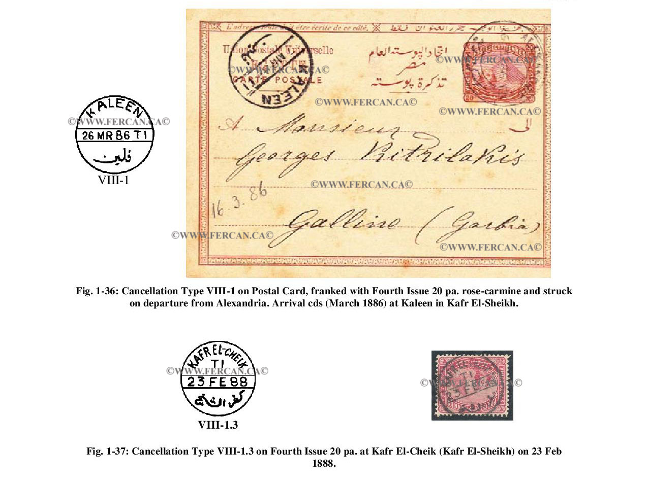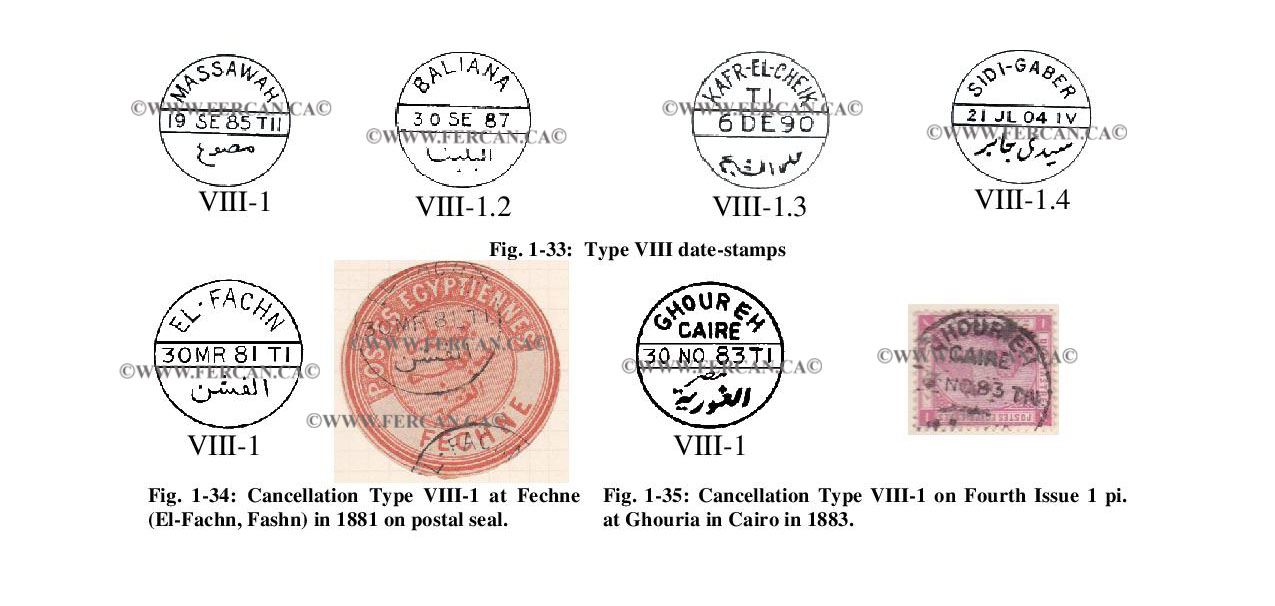 This eighth type is distinguished by the use of Arabic and French and was introduced in 1880. Its use was at first limited to a few post offices, but was later used in many more offices.