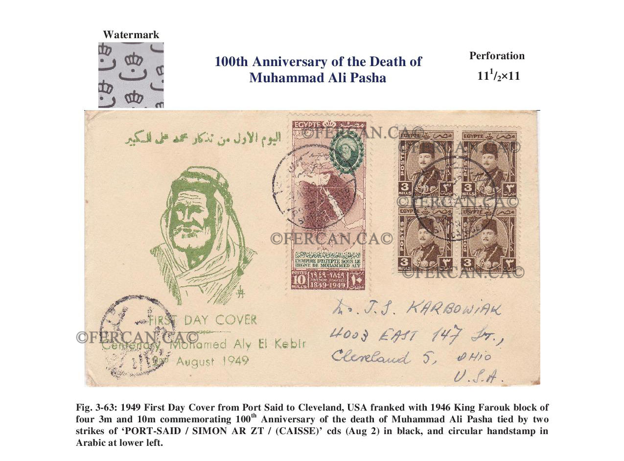 2 August 1949 - 100th Anniversary of the Death of Muhammad All Pasha. Photogravure by the Survey Department, Cairo. Usage valid until 1st December 1949.