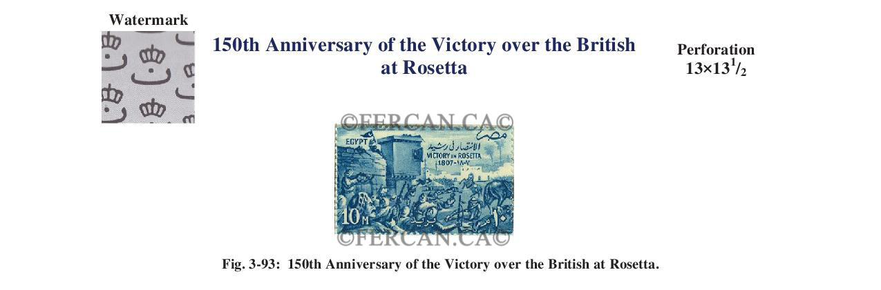 10m stamp issued 8 March 1957 to celebrate the 150th Anniversary of the Victory over the British at Rosetta. Photogravure by the Survey Department, Cairo.