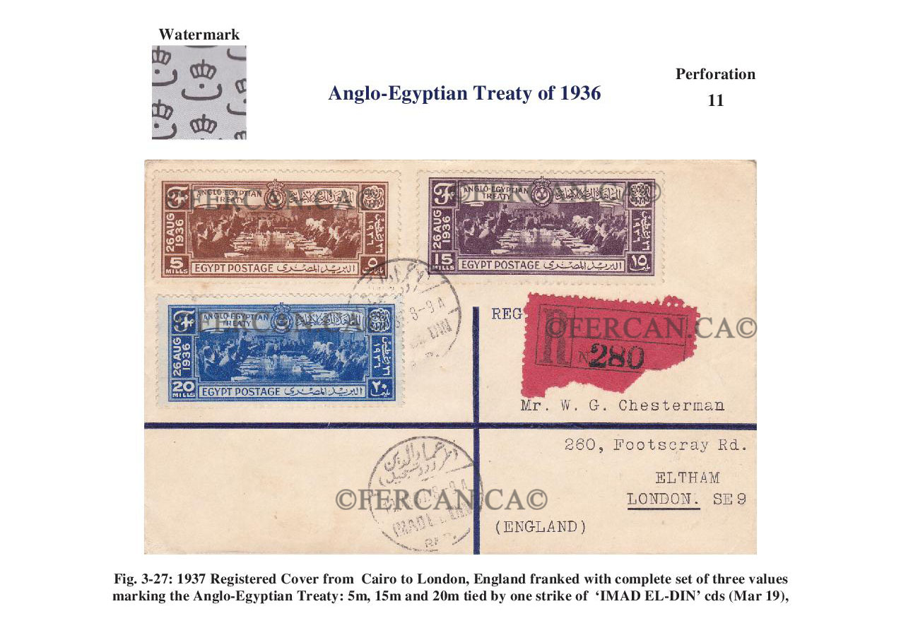 26 August 1936 - Anglo-Egyptian Treaty Photogravure by the Survey Department, Cairo. Usage valid until 22 March 1937.