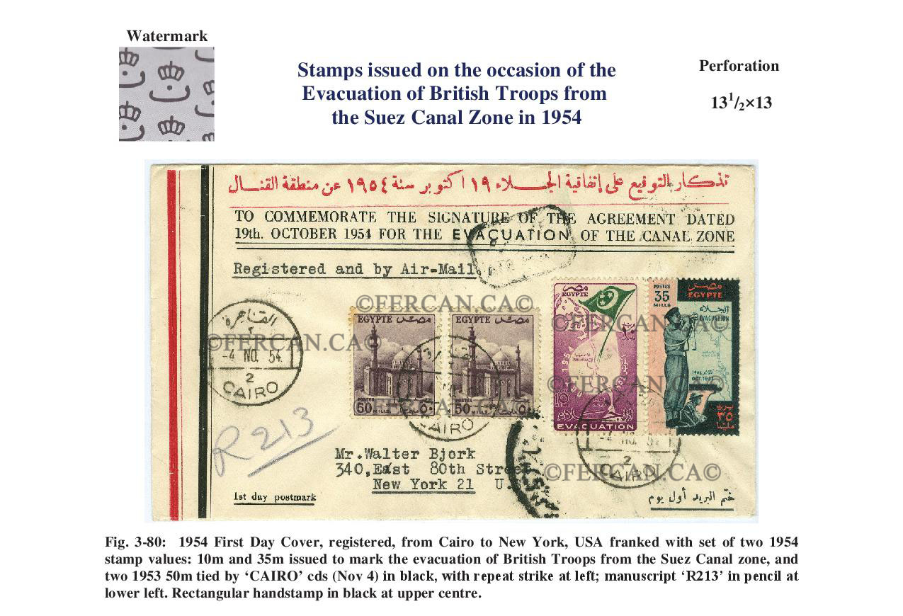 4 November 1954 - British Troops Evacuation of Suez Canal Zone. Photogravure by the Survey Department, Cairo. Usage valid until 3 November 1955.