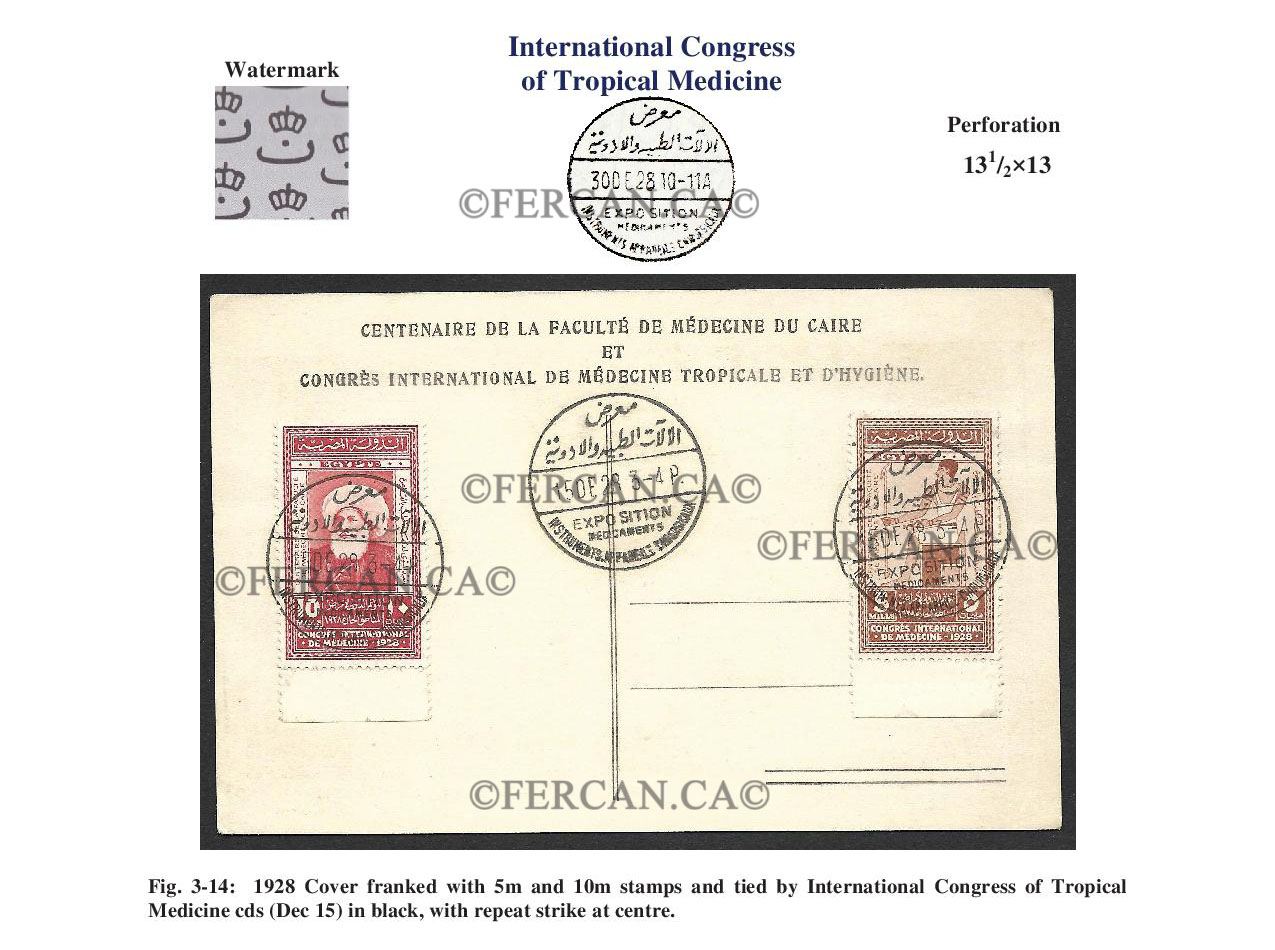 This Congress coincided with the centennial of the Qasr El-Ainy Hospital and School of Medicine founded by Mohammed Ali Pasha. The set of two stamps was thus a double commemorative. The subjects of the designs were selected by the Dean of the Faculty of Medicine, Cairo in April 1928 and accepted by the Postmaster General in May.