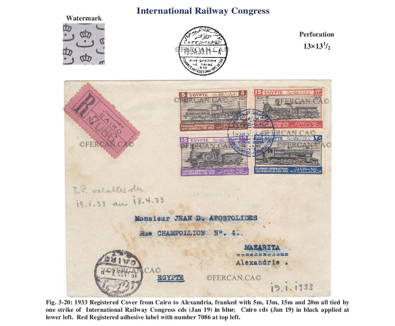 19th January 1933 - International Railway Congress, Cairo. Offset Lithography by the Survey Department, Cairo. Usage valid until 18 April 1933.