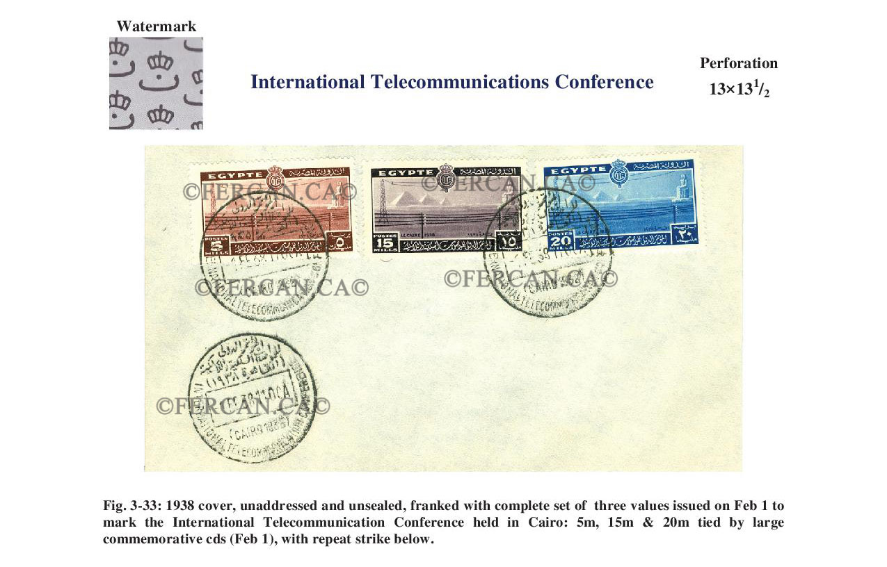 1st February 1938 - International Telecommunications Conference, Cairo. Photogravure by the Survey Department, Cairo. Usage valid until 15 May 1938.