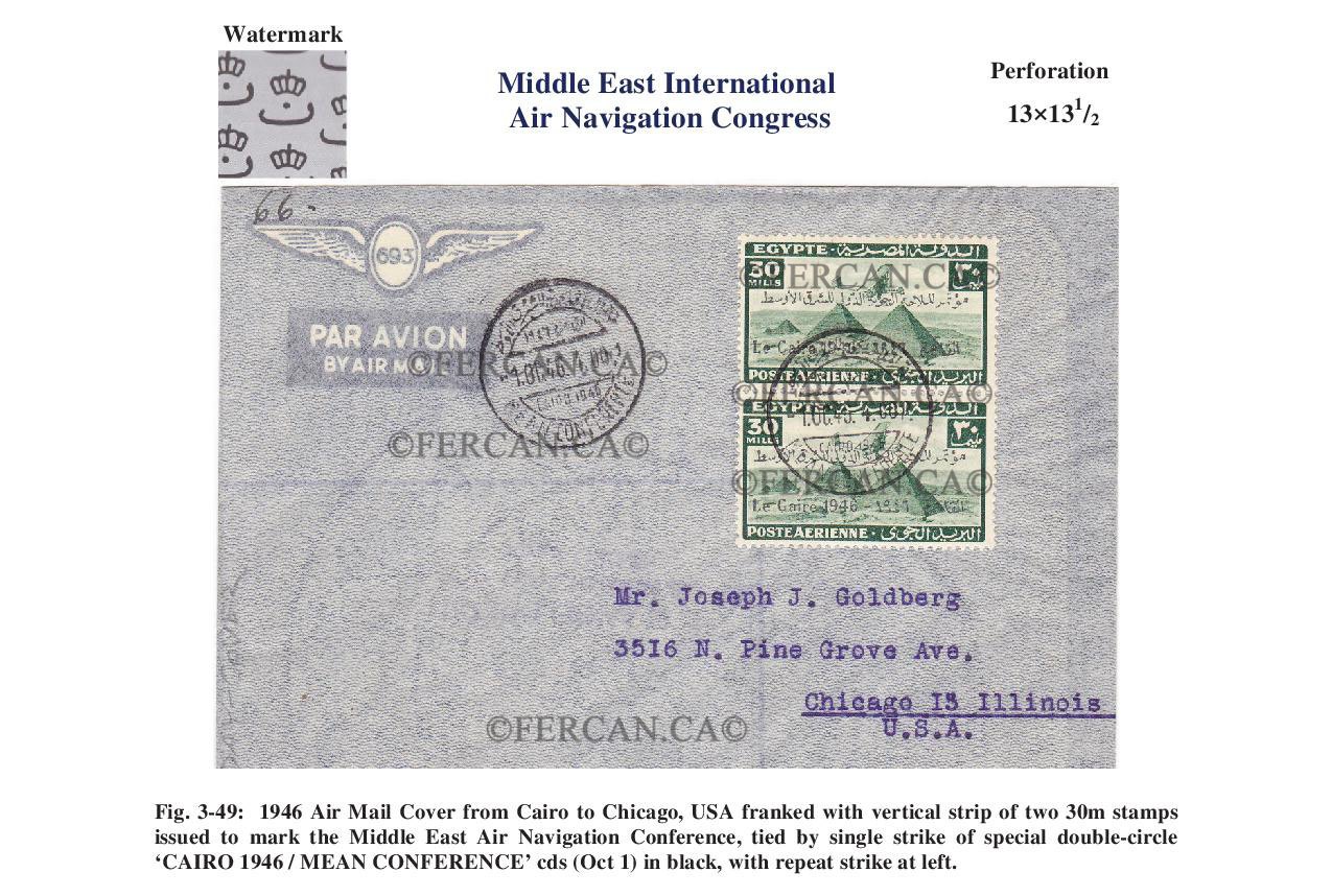 1st October 1946 - Middle East International Air Navigation Congress. Stamp overprinted in Arabic and French, "Middle East International Air Navigation Congress - Cairo 1946". Typographed by the Government Printing Works, Boulaq, Cairo. Usage valid until 31 January 1947.