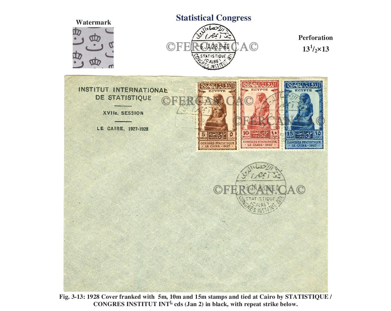 29th December 1927 - Statistical Congress, Cairo. Photogravure by the Survey Department, Cairo. Usage valid until 16 March 1928.