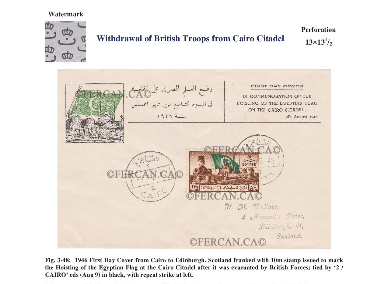 This stamp commemorates the withdrawal of British Troops from Cairo. They came in 1892 and, since then Egyptians wanted full independence through different stages until the British gave them independence according to the 1923 Constitution when Egypt became a constitutional monarchy. But there were so many strings attached and, by the end of WWII, Egypt continued its request for full independence. In 1951 the prime minister of Egypt, Nahas, announced the nullification of the 1936 treaty and declared Egypt a completely independent state from Britain. Finally, the British troops left Egypt in 1954.